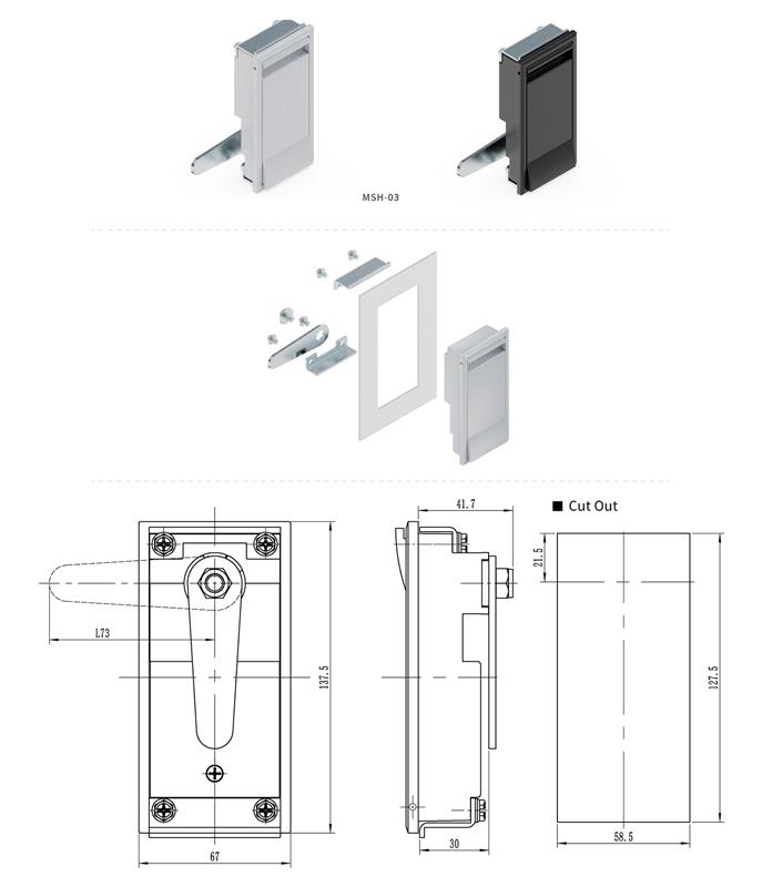● Material:Aluminum alloy body、Lock cover, Zinc Plating Shaft、cam、 Mounting plate