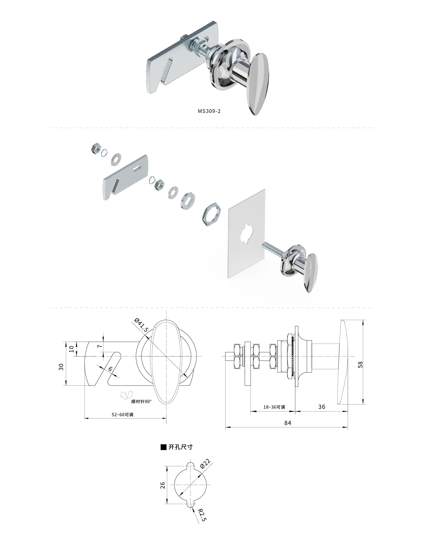 ● 材质:锌合金锁体、螺母,镀锌锁片