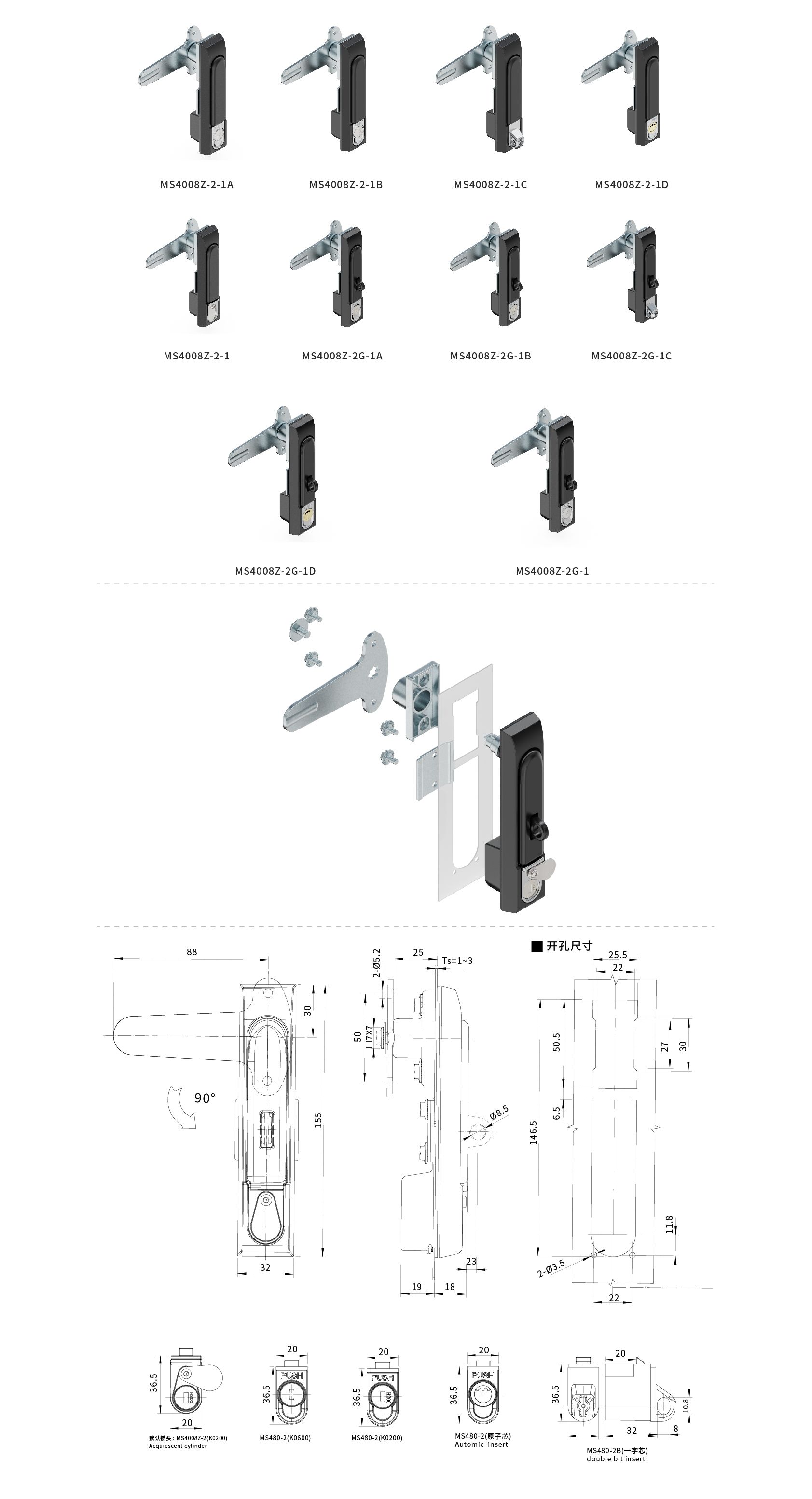 ● 适用门板厚度:1~5mm