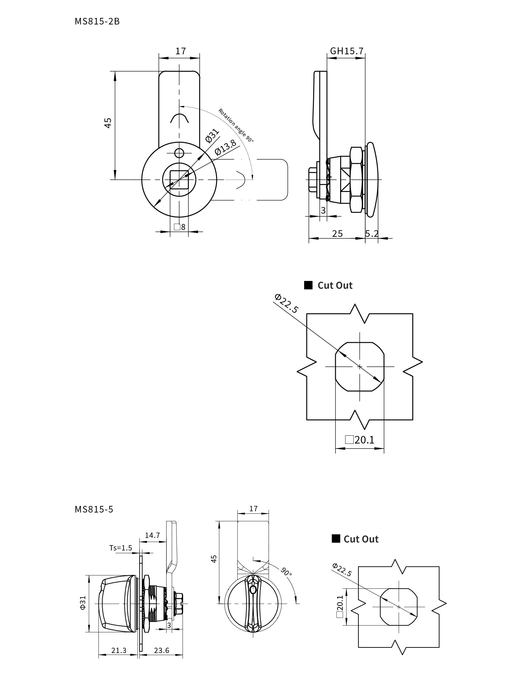 ● Remarks:90° rotation to achieveopen or Locking