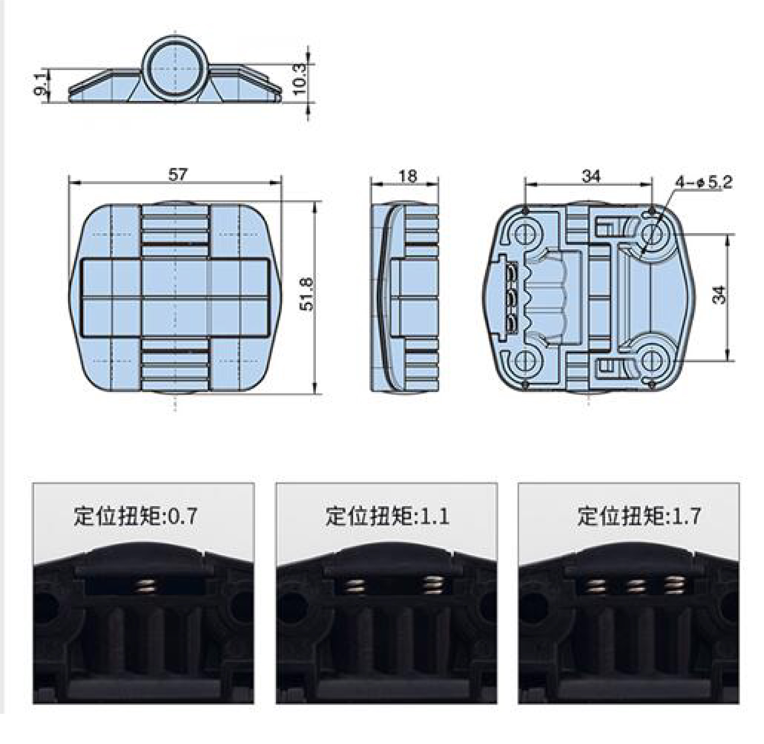 ● 材质:POM动静铰链,盖板,不锈钢转轴,弹簧,钢珠.