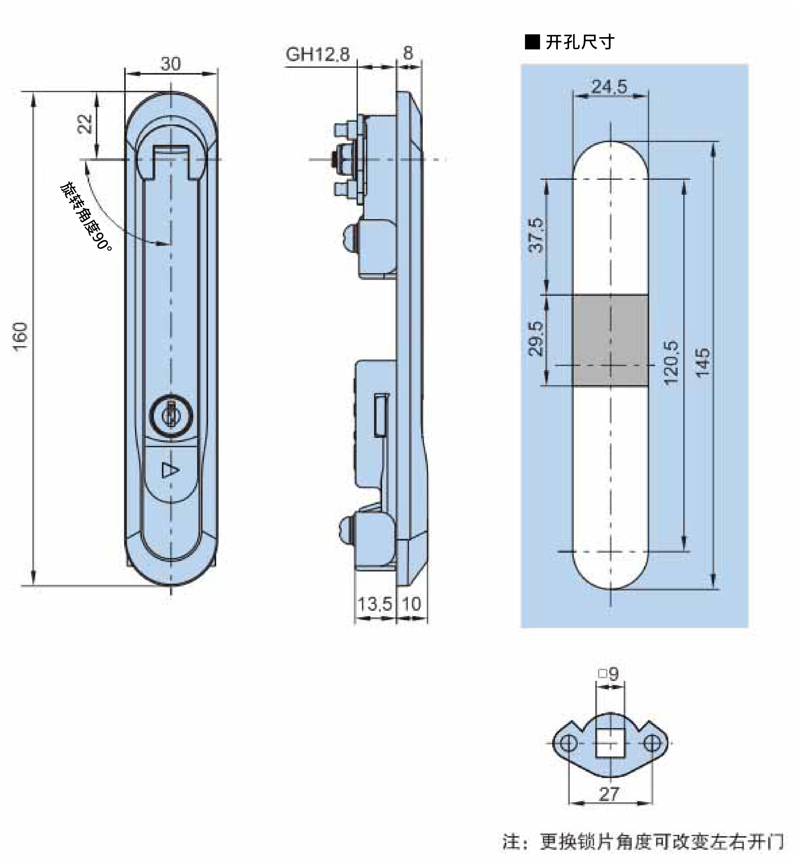 ● 材质:ABS锁壳,锌合金锁背,A3锁片,安装板