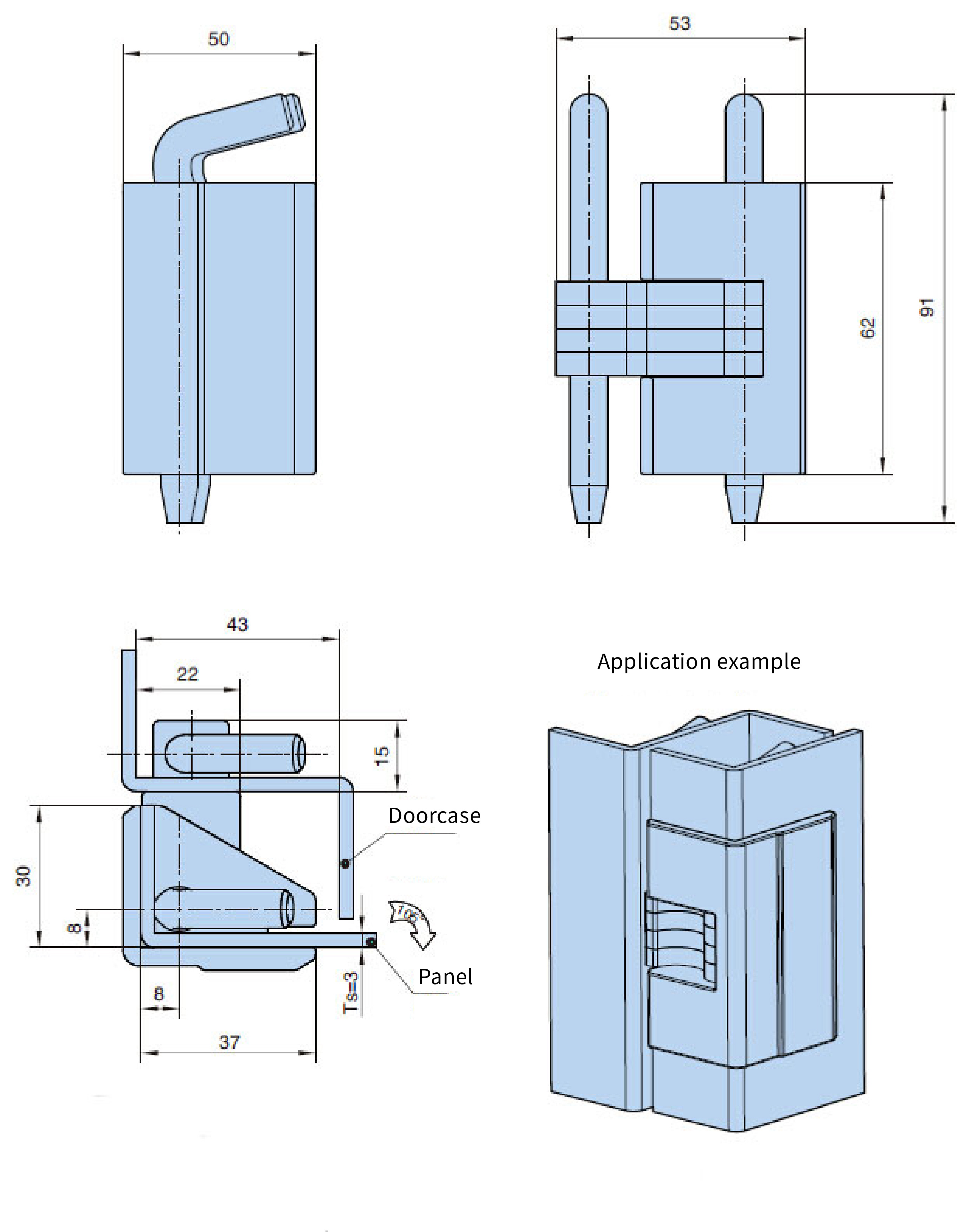 ● Material:Zinc die-casting hinge steel pin